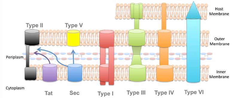 Obrázek 1. Systémy sekrece u gramnegativních bakterií