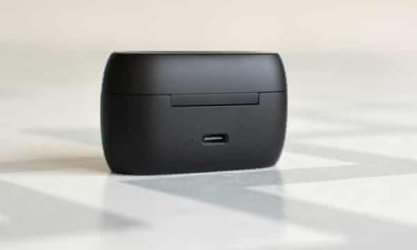 El estuche está hecho de un plástico duro y liso que es bastante fácil de marcar. Pero solo pesa 35g y se carga a través del nuevo estándar USB-C, lo que es una ventaja. Se tarda dos horas y 20 minutos en cargar completamente la funda a través de un puerto USB normal del ordenador, o más rápido utilizando un cargador USB más potente.