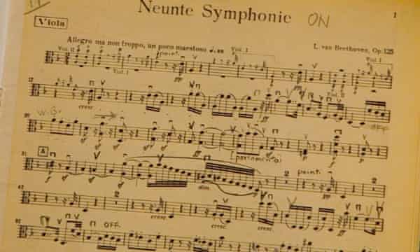 Mais ces réflexions et réfractions sur et de la Neuvième Symphonie doivent aussi englober les façons dont le morceau a été utilisé comme un ver d’oreille manipulateur par des régimes peu recommandables. L’Hymne à la joie – que Beethoven a composé comme une devise que le monde entier devait prendre à cœur, pour devenir un hymne national de l’humanité elle-même, quelque chose de bien plus important dans son impact que les hymnes des États-nations qui avaient émergé au début du XIXe siècle – a été adopté comme devise par des dictatures aussi bien que par des démocraties. Comme le dit Jan Swafford, le biographe le plus récent de Beethoven, « la façon dont on considère la Neuvième (…) dépend du type d’Elysium que l’on a en tête, si tous les gens doivent être frères ou si tous les non-frères doivent être exterminés ». (Le livre d’Esteban Buch, Beethoven’s Ninth – A Political History, en dit plus sur cet aspect particulier de l’histoire de la symphonie). Aujourd’hui, l’Ode à la joie est l’hymne de l’Union européenne et le son des célébrations de Hogmanay et du Nouvel An partout, de l’Allemagne au Japon, et c’est un rendez-vous annuel aux Proms, traditionnellement l’avant-dernière nuit de la saison, comme cette année. Certains pensent que Beethoven a tout simplement trop bien réussi à écrire un air qui pourrait vraiment être chanté par toute l’humanité, et que sa vision de la fraternité universelle (ou presque – j’y reviendrai !) est au mieux kitsch, au pire politiquement dangereuse. Le chef d’orchestre Gustav Leonhardt, parlant du finale, a dit simplement : « Cette ‘Ode à la joie’, quelle vulgarité ! Et le texte ! Complètement puéril ! »