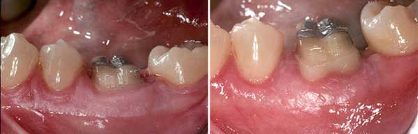 À mon avis, l’allongement de la couronne devrait être fait après le traitement de canal. Il y a plusieurs raisons à cela. L’une d’elles est que, dans la plupart des cas, le traitement de canal détermine la possibilité ultime de sauver la dent et si une restauration appropriée peut être placée sans compromettre l’intégrité de la dent. La deuxième raison est la facilité du traitement. Une fois l’allongement de la couronne effectué, en raison de la nature du traitement et de l’importance de l’implication des tissus durs et mous, il faut jusqu’à 10 semaines pour obtenir une cicatrisation idéale avant de pouvoir appliquer à la dent ou aux structures environnantes toute contrainte supplémentaire, telle que la pose d’une digue en caoutchouc sur la dent ou le fait de demander au patient d’étirer ses joues pendant de longues périodes. Ce type de retard dans le traitement de canal d’une dent compromise peut potentiellement conduire à une défaillance complète de la dent et à un traumatisme supplémentaire dû à l’invasion bactérienne ou à la destruction de la structure de la dent sous l’effet de l’usure normale. Un autre facteur à prendre en compte est qu’en effectuant le traitement de canal après l’allongement de la couronne, les fibres de Sharpey nouvellement formées et l’attache du tissu conjonctif peuvent être soumises à un stress énorme par le clamp de la digue en caoutchouc, en particulier dans les situations où il n’y a pas de dent distale adjacente à utiliser comme ancrage du clamp. Ce type de stress peut conduire à des dommages supplémentaires du ligament parodontal (PDL) et des tissus conjonctifs nouvellement formés. (figure 3)