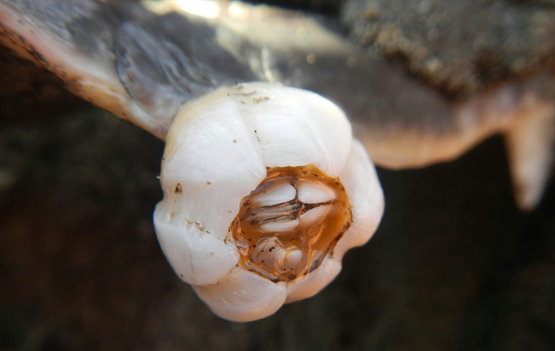 Abbiamo scoperto dei cirripedi ermafroditi che usano la loro testa per cementarsi al guscio della tartaruga marina. Maschi miniaturizzati della stessa specie di cirripedi vivono anche nelle scanalature del guscio del più grande cirripede ermafrodita.
