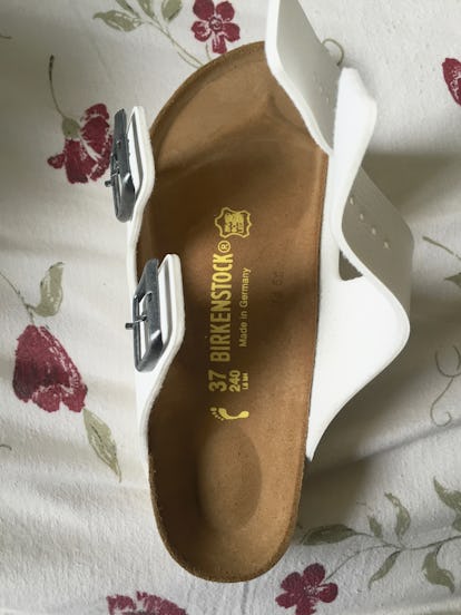 見てください!私のつま先のプリントが見えています! これは、通常の仕事の日(地下鉄の行き帰りに歩いたり、ランチを食べに出たり)に7日間履いた後のものですが、まったく問題なく履ける感じです。 足が痛くなることもなく、足がしっかり支えられている感じがして、これぞビルケンシュトックの醍醐味だと思います。