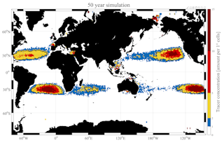 Około 1% plastikowych śmieci gromadzi się w pięciu „wyspach śmieci” znajdujących się na otwartym oceanie w regionach subtropikalnych. Powstały one w wyniku cyrkulacji oceanicznej, która zależy od zmian w polach wiatrów i obrotu Ziemi.